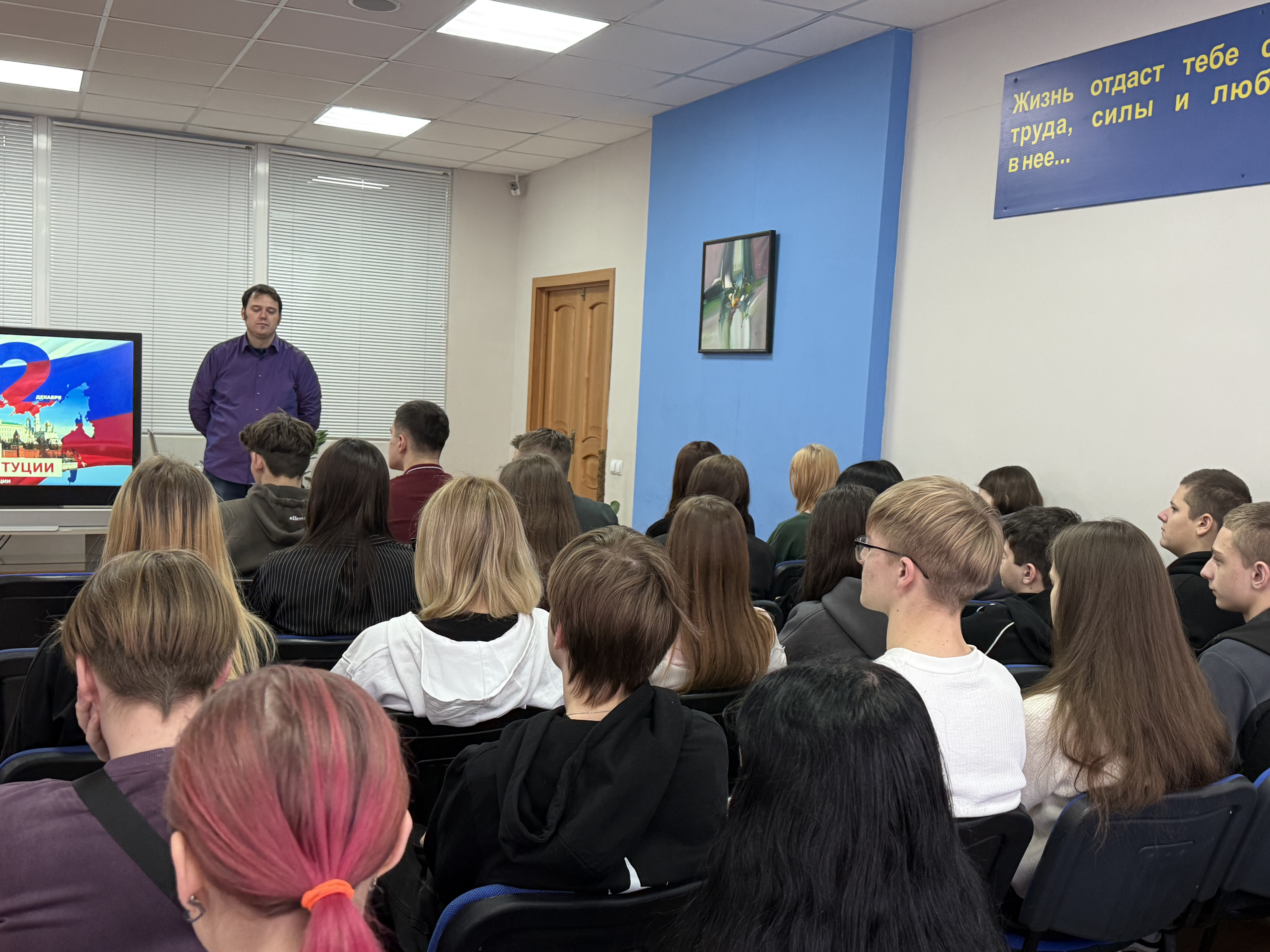 15 декабря в колледже прошли классные часы, посвящённые закону и справедливости, приуроченные ко Дню Конституции Российской Федерации. Занятие было направлено на формирование у студентов глубокого понимания важности справедливости как фундаментальной духовной и нравственной ценности нашего общества.